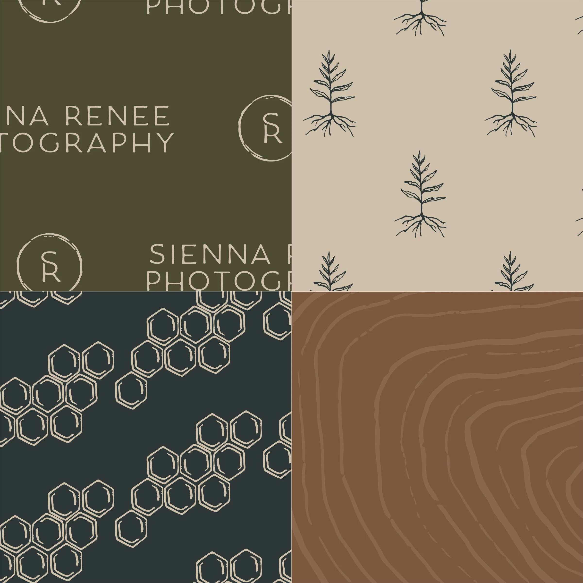 Sienna Renee Photography is a documentary-style wedding and family photographer based in Maine, focused on capturing real moments and the in-between details that make life feel like life. The brand was designed to feel warm, earthy, and approachable, with a moody, minimal look that lets the photography do the talking. A palette of deep navy and forest tones sets a grounded foundation, balanced with warm wood, tan, soft cream, and subtle black accents to keep everything feeling natural, lived-in, and timeless.